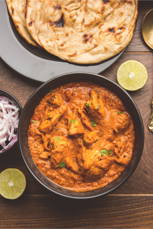 Tandoori chicken simmered in a luscious tomato-cream gravy. Smoky, buttery, and slightly sweet - Delhi's beloved export.